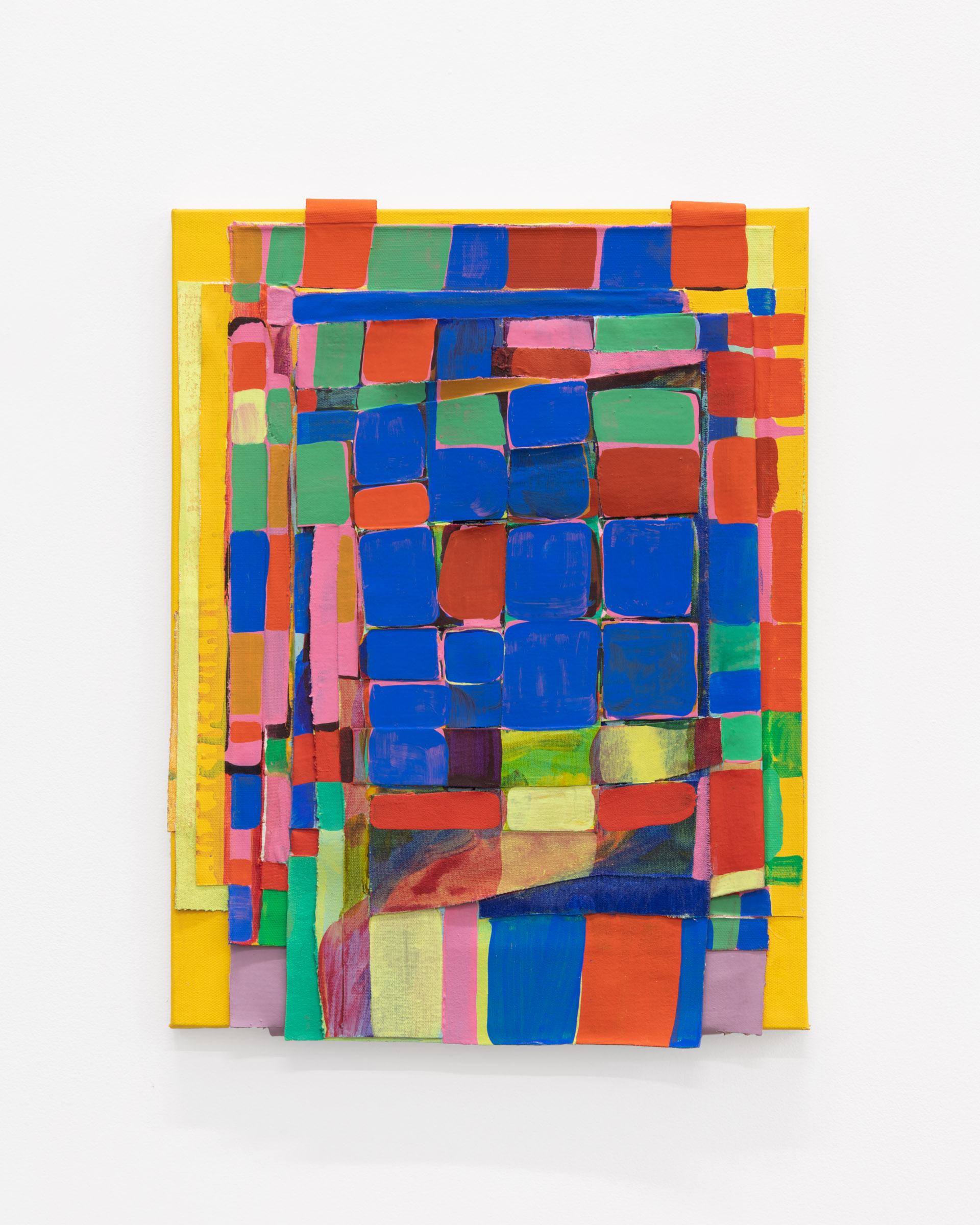 In Mark’s paintings I find this renewed joy of abstract painting, and they’re ability to convey that a new path forward was and is still possible all along. Even while the stretches and zones of canvas remain taught, there is a comfort and ease in their making and presence. Threading and pulling through, dog-earring and twisting, there is no necessity for forcefulness as the painting guides itself along. In this grid, anxiety is lessened.
