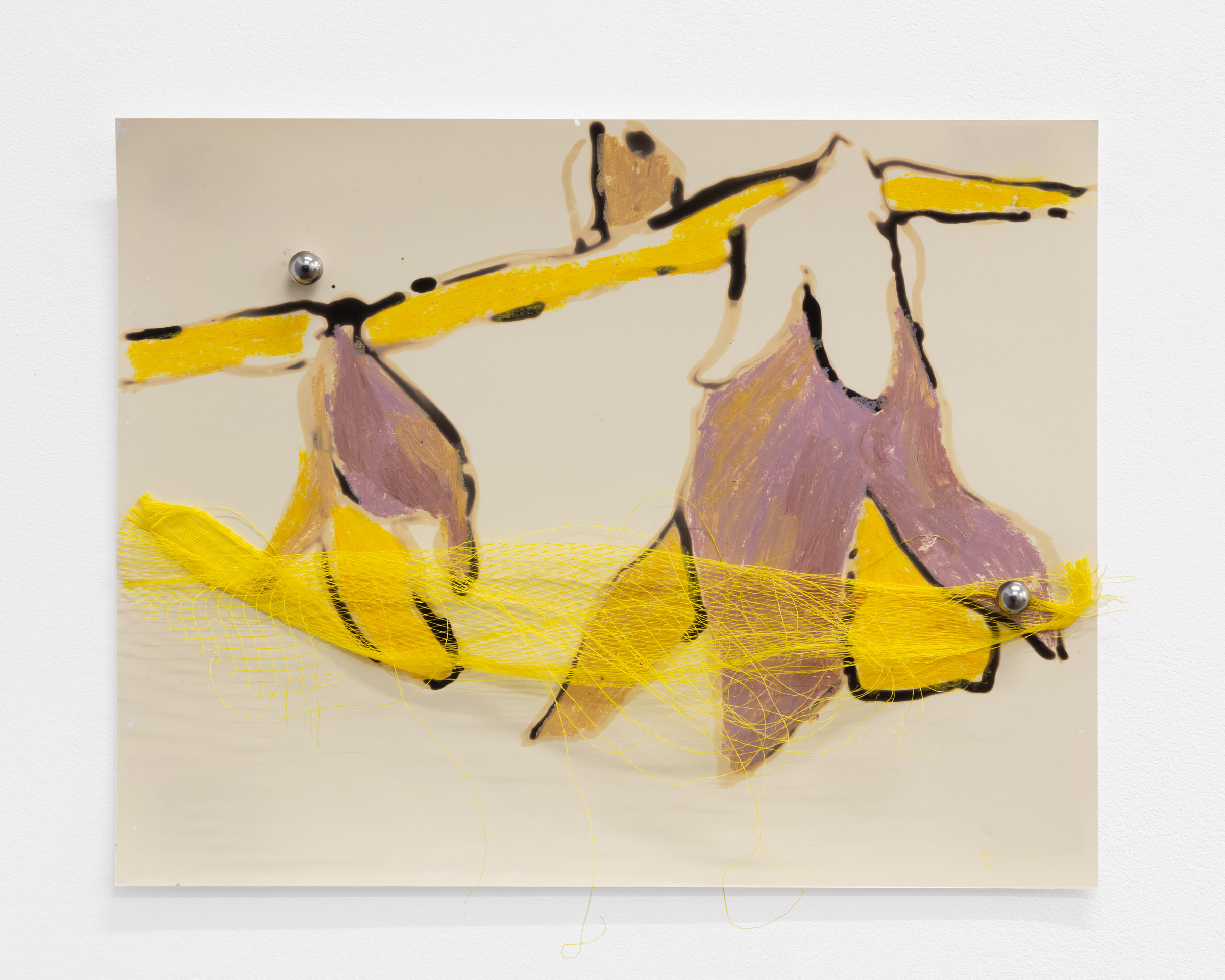 The mesoderm is by definition in development. It is preliminary and full of potential. Once it transfigures into fascia, it becomes the internal structure that holds our bodies to an order. I would suggest that Kang’s works are mesodermic in the sense that they contain the structures and information for other works within them. In this current iteration of Mesoderm, one could then read the works as preparatory sketches produced during the development of a major project commissioned by Chisenhale Gallery, In Cascades, that opens concurrently. But I imagine that describing the works in this way would assign too much linearity to Kang’s committed cyclical way of working. Another way then to view Mesoderm in relation to Kang’s larger practice and the simultaneous production and exhibition In Cascades might be through a theory of continual movement and circuitry found in her study of acupuncture. Acupuncture communicates the central nervous system, made up of the brain and spinal cord, and the peripheral nervous system, the rest of the body, via nerves. Viewing Kang’s work reveals both a honed and cohesive aesthetic and material language and a way of working in seriality where circulation and renewal eclipses fixity and completeness.