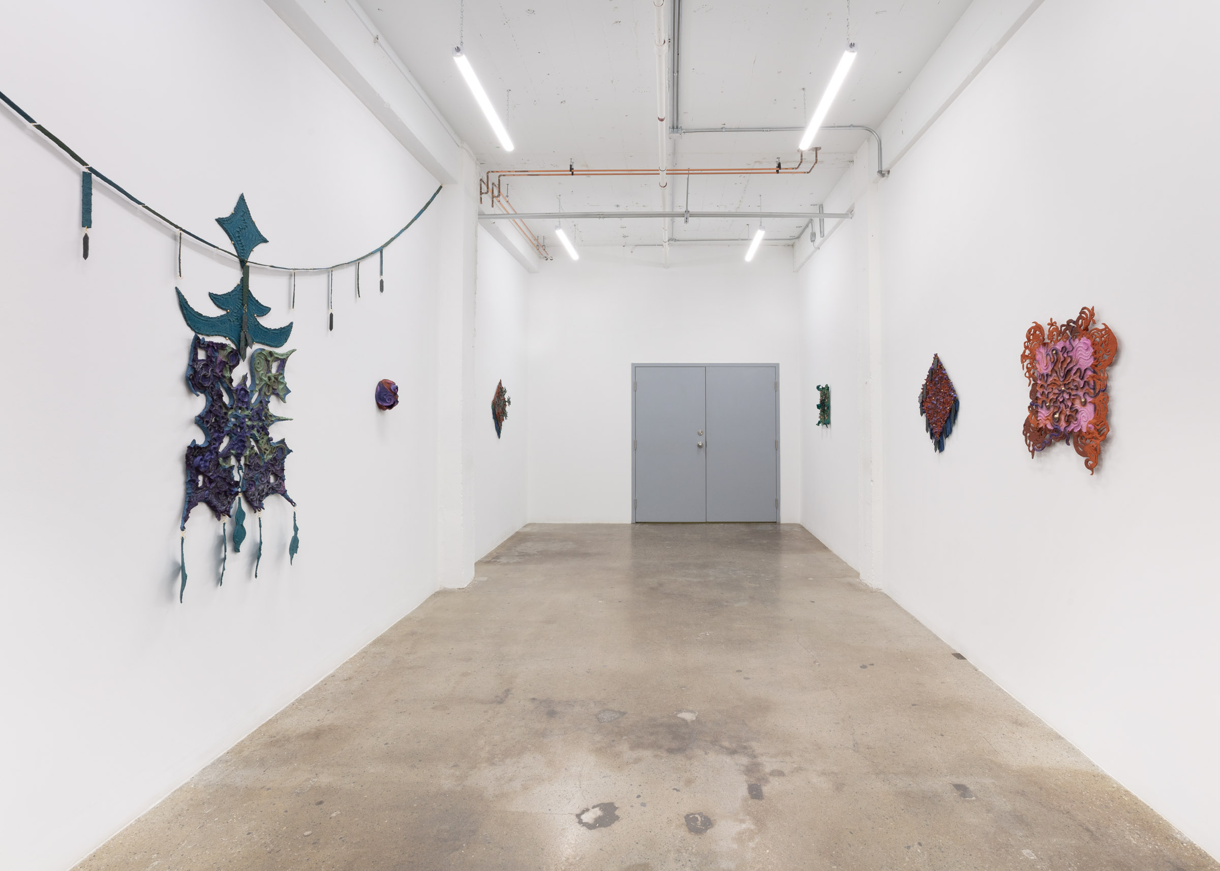 Franz Kaka is delighted to present Thea Yabut’s first solo exhibition with the gallery, ROGUE BEZEL. This new series of work builds on Yabut’s distinct material usage of pigmented paper pulp, pushing ornamentation and embellishment towards an intentional point of excess. Utilizing construction techniques lifted from jewelry repair and assembly, Yabut’s adorned and decorated surfaces analogize the searching nature of adolescent self-expression with the construction of individual and cultural identity more broadly, examining the role that fashion, pattern and ornamentation play in these formations. Built directly onto aluminum substrates, the works evoke the low-relief textures of coloured stucco walls, shields, or medallions.