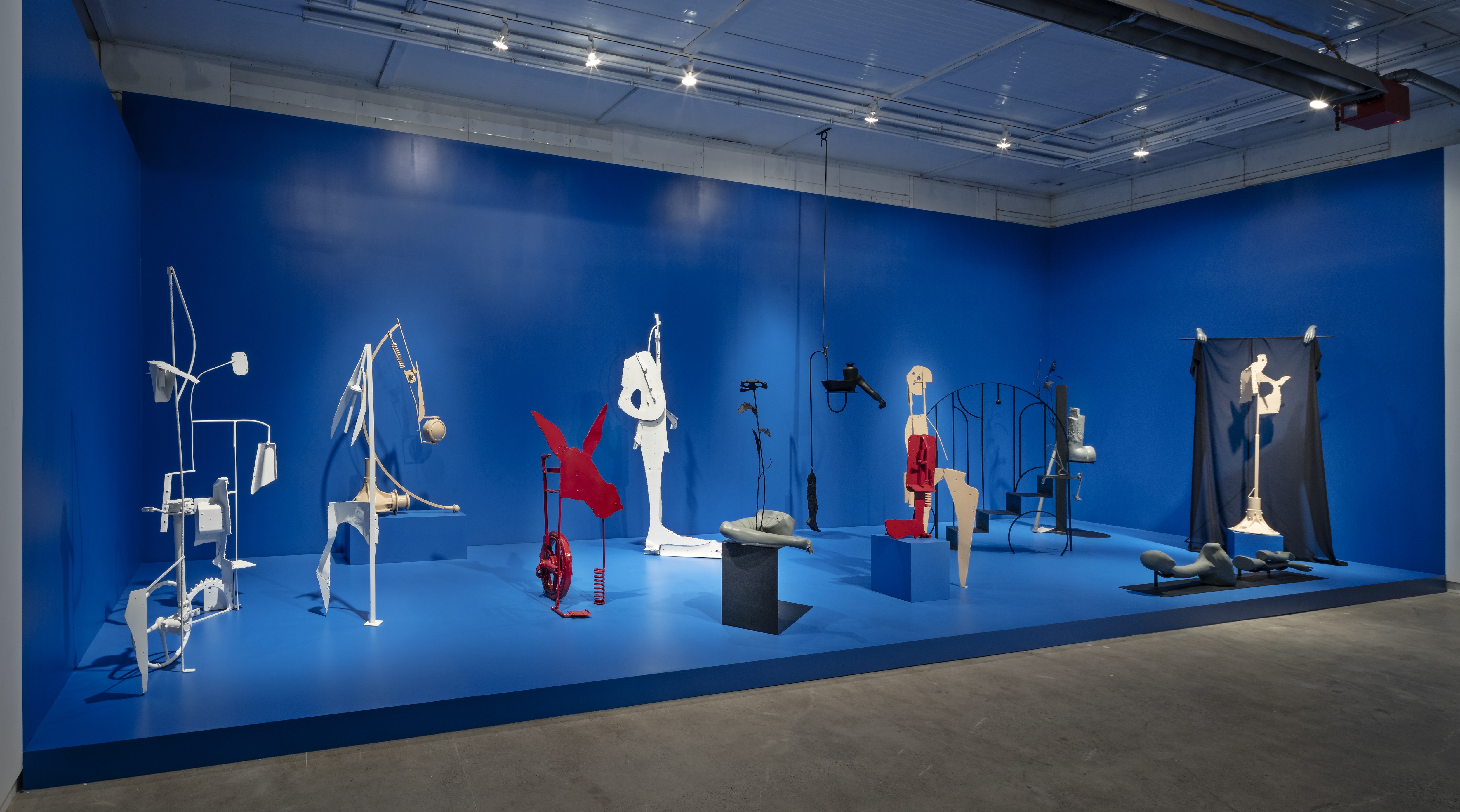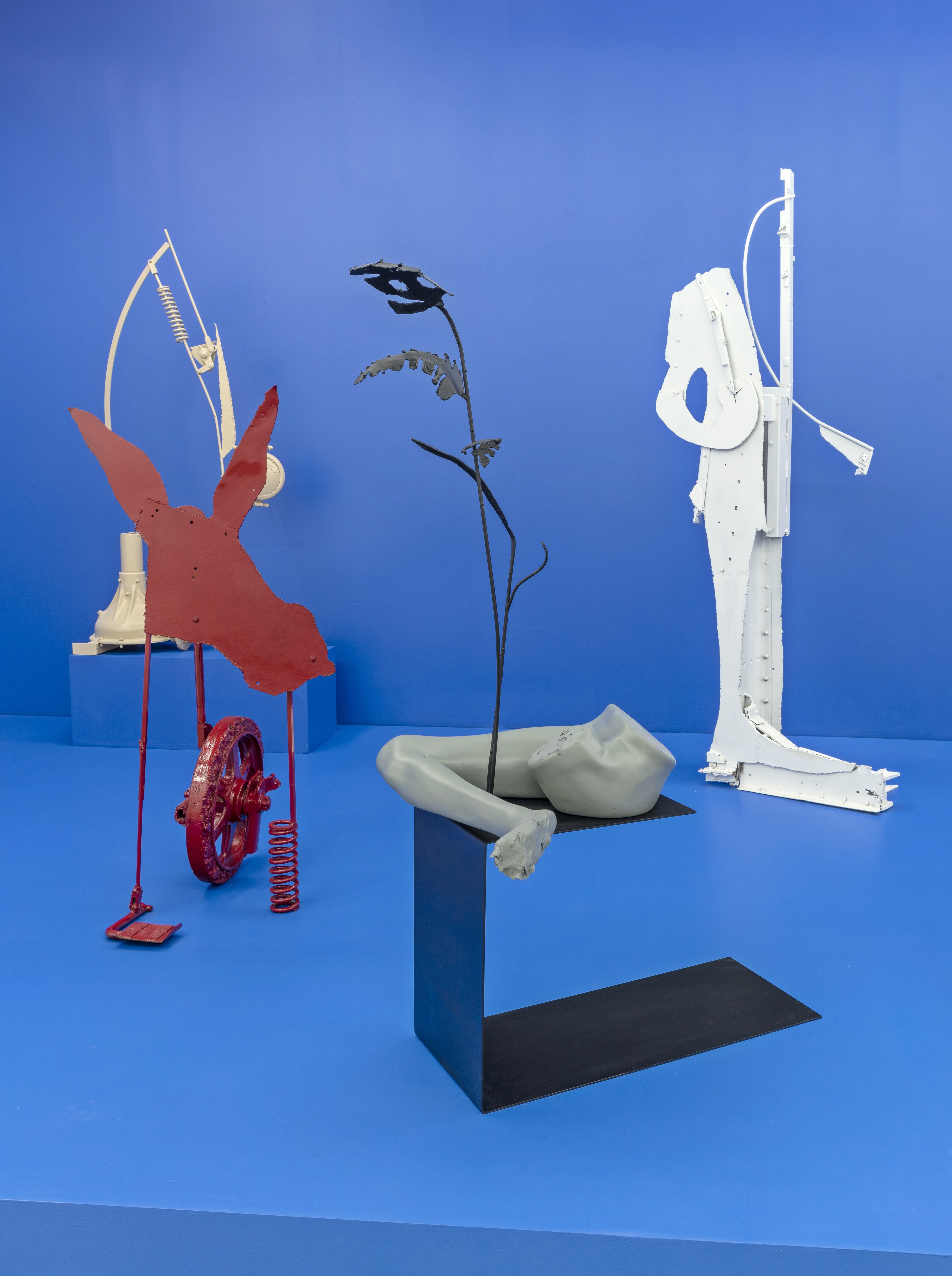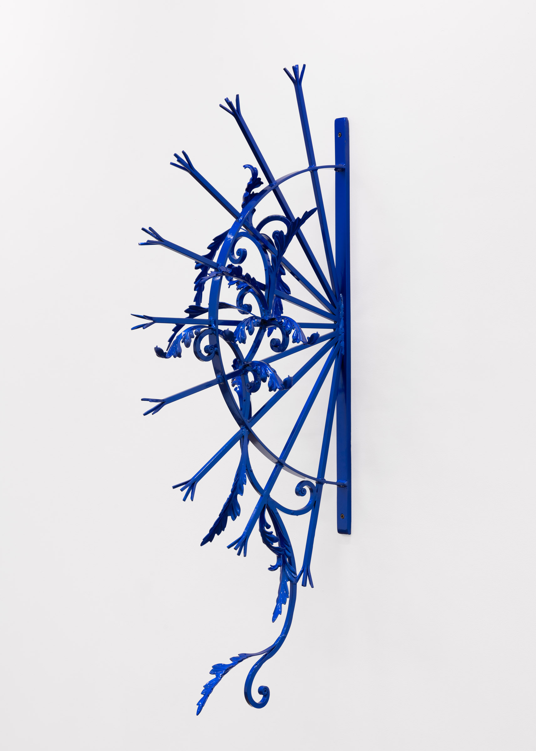 Tony Romano, Blue raze, 2024, powder coated welded steel, 60 x 16 x 23.25 in (152.4 x 40.6 x 59.1 cm).