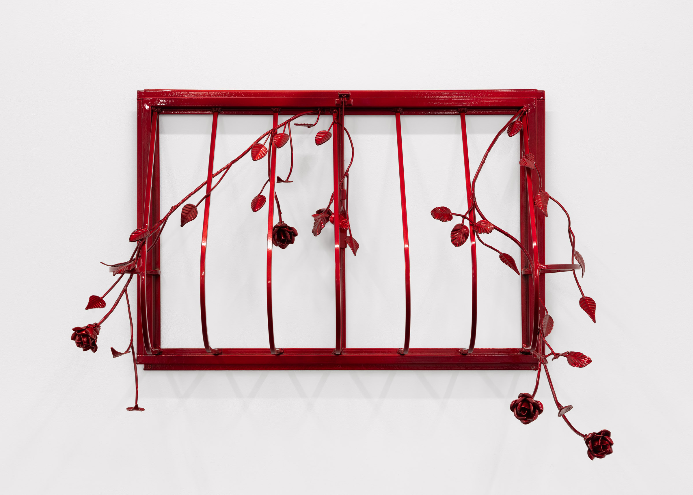 Tony Romano, Not home, 2024, powder coated welded steel, 30 x 40 x 16.5 in (76.2 x 101.6 x 41.9 cm).
